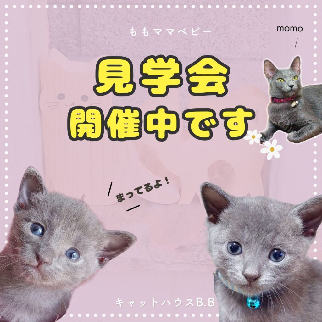 こんにちは、キャットハウスB.Bです🐾 このたび、8月に生まれたロシアンブルーの赤ちゃん3匹全員が、それぞれ素敵なご家族のもとへと旅立ちました✨ 見学会にお越しくだ... -